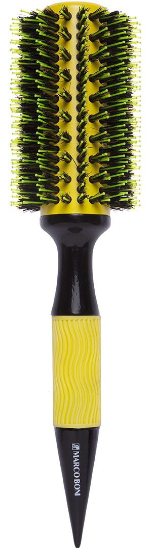 Cerdas dupla altura: cerdas de javali e nylon que proporciona maior tração aos fios; Tufagem espaçada: melhor circulação do ar, agiliza a secagem; Cabo antideslizante; Cabo separador de mechas; Tamanho: 65mm de diâmetro; Thermal Ceramic: corpo revestido de cerâmica; ajuda a manter a temperatura do secador de modo uniforme e prolongado; agiliza a secagem; Linha econômica; Dicas de uso: Envolva uma mecha nas cerdas da Escova Pro Tools, e utilize o jato de ar quente soprando de cima para baixo, evitando o efeito arrepiado.Comece o movimento de escovação pela raiz, passe para a metade do comprimento da mecha até as pontas. Para modelar e selar os fios, sem causar danos aos cabelos, utilize a face lisa de alumínio, que aquecerá rapidamente, deixando sua escovação perfeita. Repita esse procedimento em todas as mechas. Dicas de conservação: Para conservar sua escova, o ideal é manter uma distância mínima de 5 a 7 centímetros do secador.
